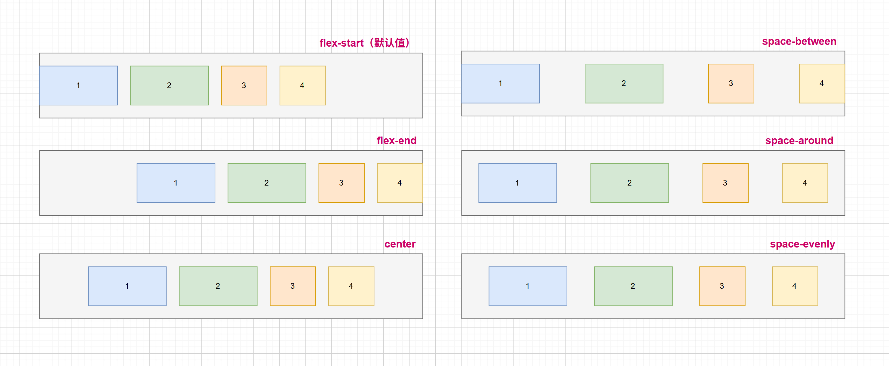 - justify-content属性是整个内容区域在容器里面的水平位置(左中右)