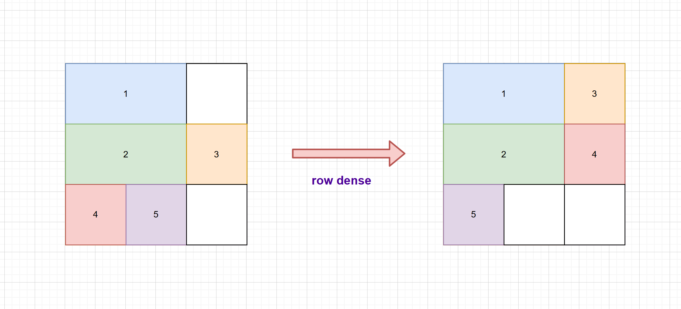 row dense或column dense。某些项目指定位置以后,剩下的项目怎么自动放置,并且尽可能紧密填满,尽量不出现空格。