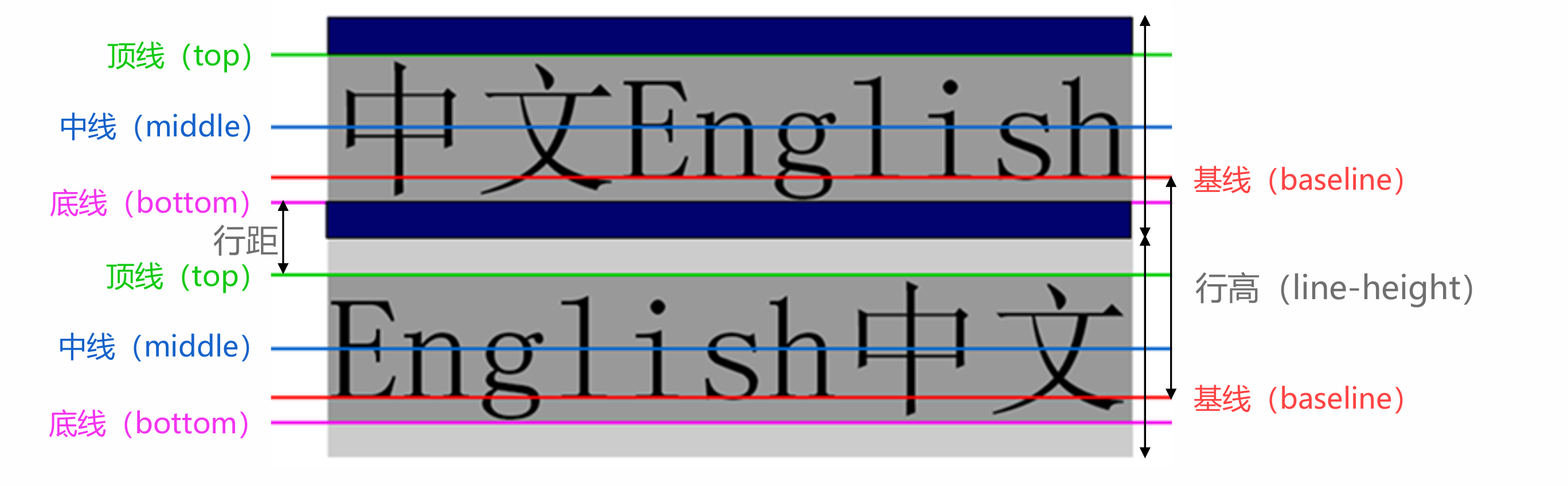 baseline):与小写字母x最底部对齐的线 - 行高 (